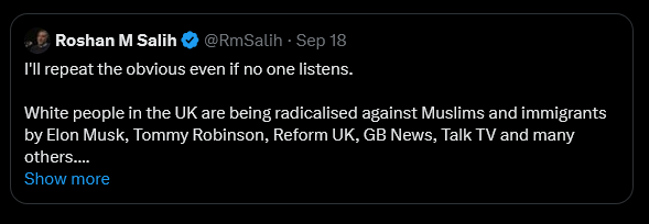 This is true. White people in the UK are being radicalised against Muslims.