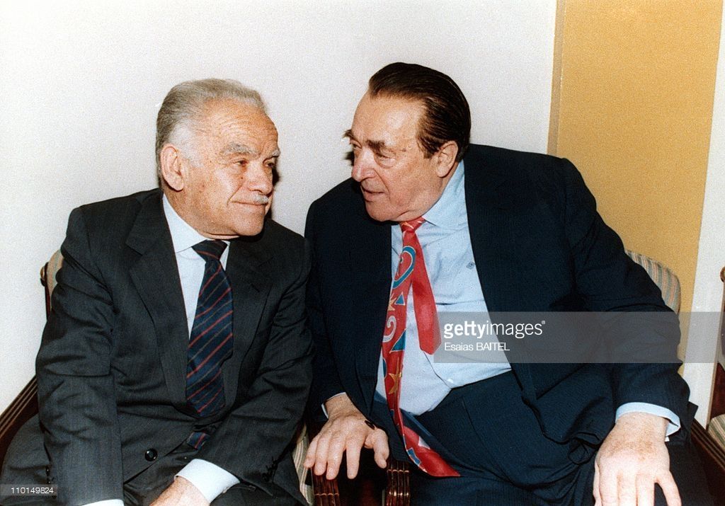 Portrait of American financier Jeffrey Epstein (left) and real estate developer Donald Trump as they pose together at the Mar-a-Lago estate, Palm Beach, Florida, 1997.
