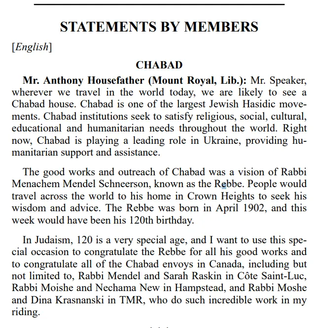 Federation of Chabad Lubavitch, Rabbi Chaim