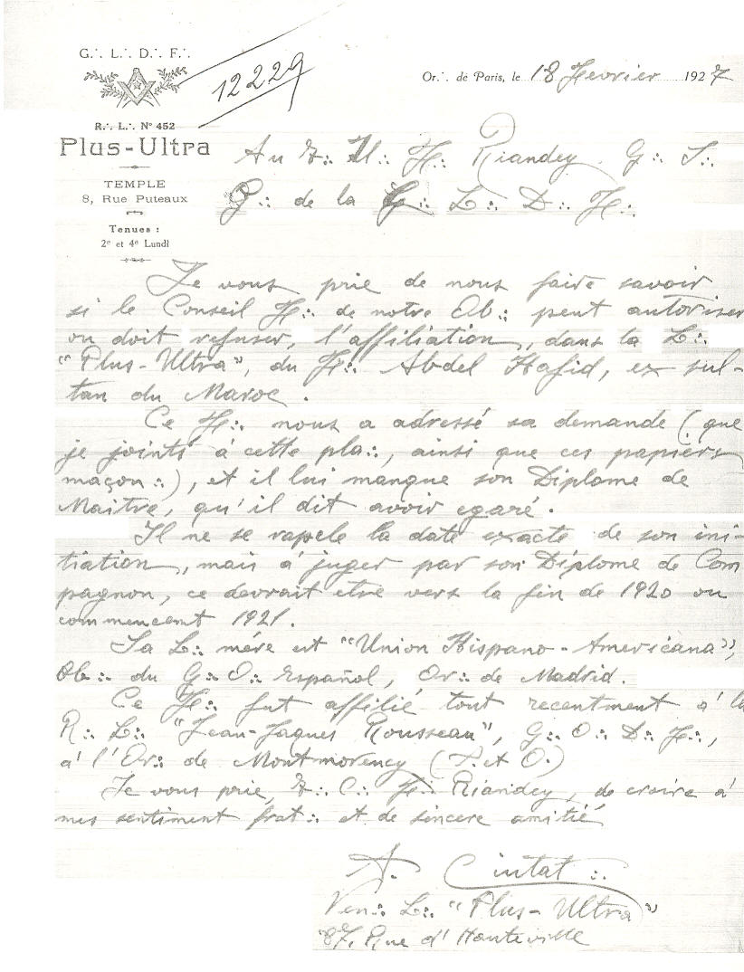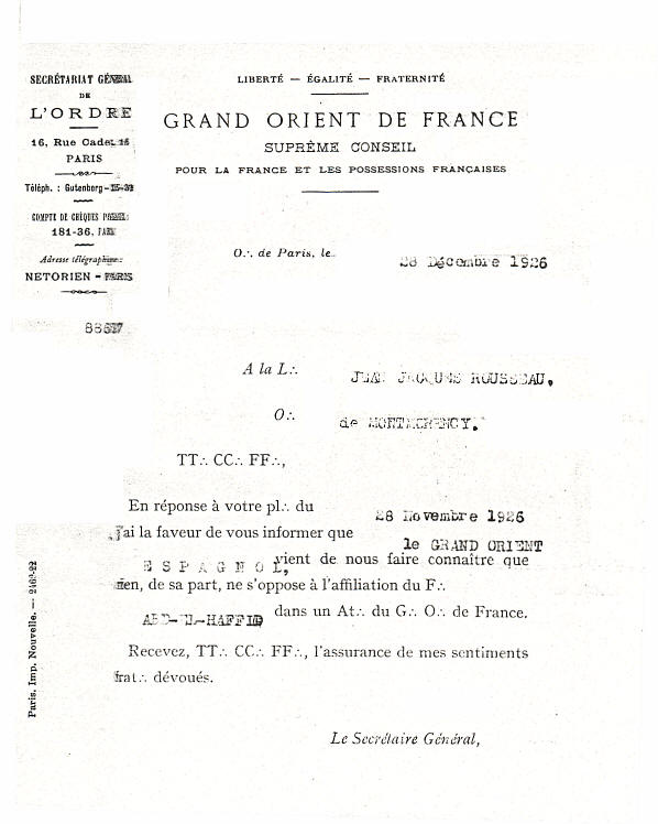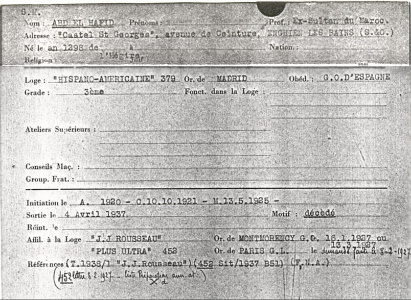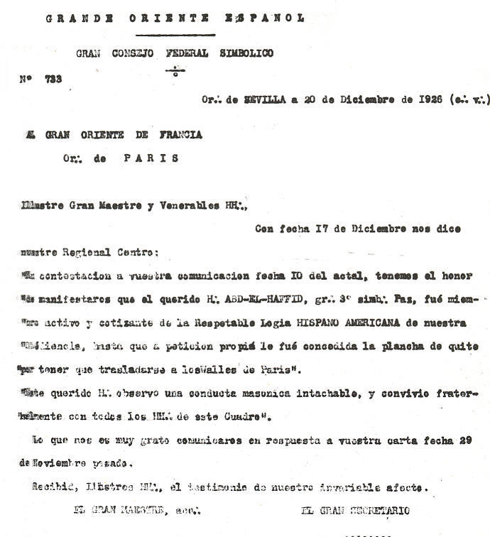 membre d´une de leurs loges maçonniques Espagnoles de Tanger, en précisant que:
