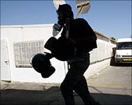 policista v přední části vězení blízko Aškalonu