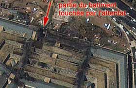 První satelitní snímek ukazuje část budovy, která byla zasažena Boeingem. V druhém snímku je dobře vidět i druhou řadu budov. Je jasně patrné, že letadlo zasáhlo pouze 1. okruh budov. Čtyři vnitřní okruhy zůstávají netknuty. Jsou pouze ohořelé po explozi.