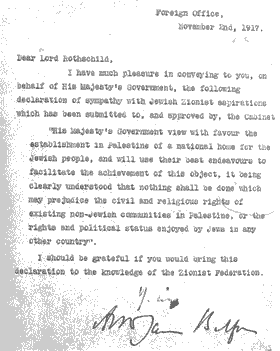 Alle ledere af det Konservative parti er efterfølgere af A.J. Balfour, der (som udenrigsminister i 1917) underskrev den erklæring som accepterede Jødernes ret til deres eget hjemland.