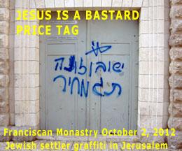 Radikale jødiske bosættere vandaliserede en kristen kirke i udkanten af Jerusalem med spraymalet graffiti 'Jesus er en bastard' og 'price tag' på kirkedøren.