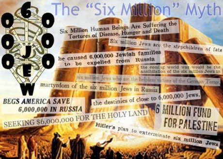 Gældende nummeret ”seks millioner” bør du vide følgende: I den hebræiske tekst af Torah-profetierne, står der, at ”du skal tilbagevende”. I teksten er bogstavet ”V” eller ”VAU” fraværende, eftersom hebræisk ikke har tal står bogstavet V for nummeret 6. Ben Weintraub, en religiøs forsker, lærte fra rabbinere, at meningen med det manglende bogstav betyder, at nummeret er ”6 millioner”. Profetien lyder så: Du kommer til at tilbagevende, men med 6 millioner mindre. Læs Ben Weintraubs bog The Holocaust Dogma of Judaism, Cosmo Publishing, Washington 1995, side 3. De manglende 6 millioner måtte findes inden jøderne kan tilbagevende til det Forjættede Land.