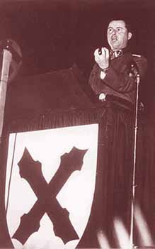 Pendant des années, les jeunes nationalistes ont souffert de l’union de toutes les forces malsaines. Les francs-maçons étaient unis, cela n’avait rien d’incompatible avec leur soi-disant patriotisme. La canaille marxiste était unis, elle disait en ricanant : « Travailleurs de tous les pays, unissez-vous ». Les forces d’argent étaient unies : les banquiers de Paris, de New-York, de Bruxelles ou de Londres s’entendaient admirablement. Mais nous, patriotes, nous devions nous détester et nous haïr. Nous, qui étions poussés par la ferveur révolutionnaire, nous devions nous ignorer. Eh bien ! tout cela est fini. Contre les internationales juive, moscoutaire et financière, s’est créée maintenant l’internationale de la jeunesse révolutionnaire. ILS ONT ETE LES MAITRES D’HIER, AVEC NOS ARMES NOUS SERONS LES MAITRES DEMAIN.