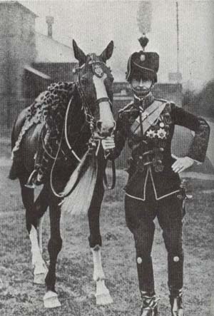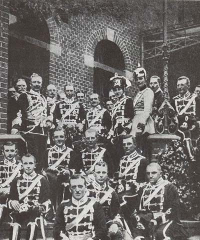 Carnival of princely families, the crown prince in the uniform of a colonel of hussars in the British Army. In those pre-1914 days people still believed in lace, chivalry in warfare, and the supranational ties between crowned heads. |