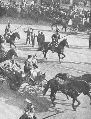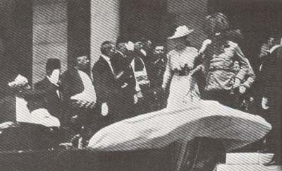 The Archduke and Dutchess leave the Sarajevo city hall to ride to the hospital in which U. Merizzi, wounded by the bomb thrown by Chabrinovich, is being treated. Franz Ferdinand and Sophie have only a few minutes to live |