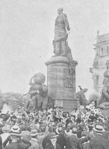 where he is welcomed by crowds cheering the imminent war. The president feigns innocence, but the demonstrators exhibit no such modesty; they know that the hour of revenge has struck at last. |