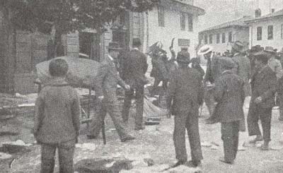 Anti-Serb Riot - The news of the double murder set off a wave of violence pitting Croatian and Bosnian loyalists against Serbs suspected of sympathizing with the Belgrade government (opposite: the looting of a Serbian house in Sarajevo, the afternoon of the assassination). |