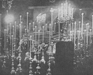 The candle-bedecked chapel in Vienna where the murdered couple lay in state. |