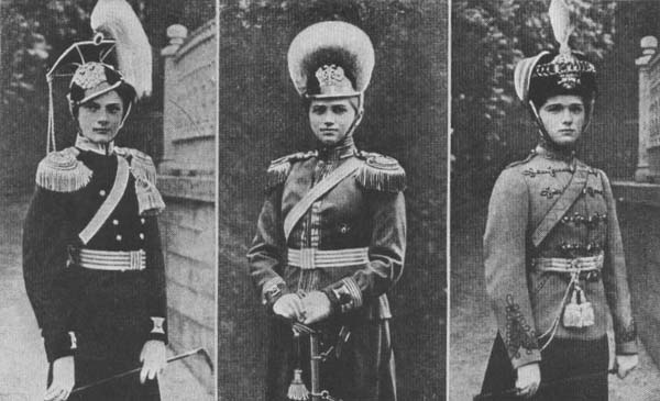 Grand Duchesses Olga, Maria, and Tatiana of Russia The three elder daughters of the tsar took part wholeheartedly in the festivities held in Poincares honor during his visit to Russia. These pretty girls had no inkling that the merry-making would be followed by war, defeat, and revolution. For them there would be imprisonment and then massacre. |