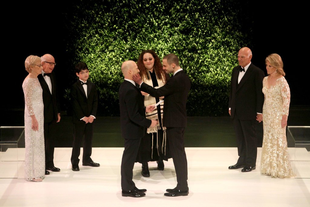 Pervert Trump kisses New York mayor Rudy Giuliani at the mayor's Inner Circle Press Roast in 2000 (video here).