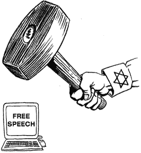 Mutta uskomaton asia on se, että nämä kirjoitukset, niiden oikeusjuttujen vuoksi, joissa Zündel taisteli 1980-luvulla, olivat laillisia painetussa muodossa Kanadassa -- ja ovat nyt laillisia painetussa muodossa Kanadassa -- mutta juutalaisjärjestöt yrittivät rangaista tai hiljentää Ernst Zündelin näiden samojen kirjoitusten vuoksi kun ne ilmestyivät internetissä Zundelsitellä -- joka, kuten olen sanonut, oli hänen vaimonsa pyörittämä eikä hänen ja toimivat Yhdysvalloista käsin.