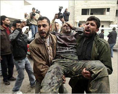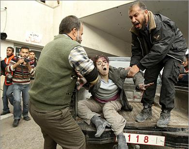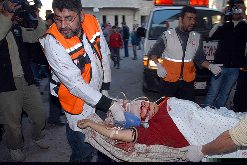 04/01/2009 - Ce jour-ci les médias occidentaux ont "omis" de mentionner que l'armée israélienne attaquent les ambulances palestiniennes (déjà près de 7 morts : ambulanciers et victimes teransportées)