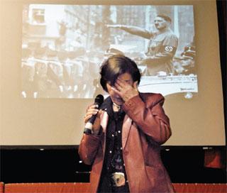 MILFORD — With a screen bearing the chilling image of Adolph Hitler as her backdrop, Holocaust survivor Anita Schorr told 11th-graders at Platt Technical High school of the dehumanization and torture she experienced and witnessed as a child in two concentration camps.