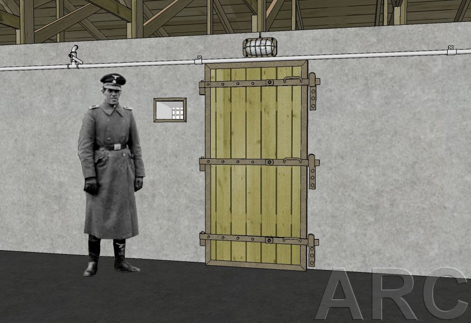 Treblinka was situated in a sparsely populated area that was heavily wooded - this site was chosen in order to conceal the atrocities taking place there. Treblinka contained living, reception, and extermination areas. The extermination area included a brick building that housed three gas chambers. A diesel engine was housed in an adjoining shed - this engine produced the carbon monoxide, which fueled the chambers. The gas flowed through pipes attached to the ceiling of the chambers, ending in what looked like showerheads. The Nazis arranged the gas chamber in this way in order to create the impression that the Jews were merely entering the building to take showers - not to be murdered. A hallway in the building led to each of the three gas chambers, and in each chamber was another door through which the corpses were removed. About 200 yards away lay the huge trenches where the corpses were buried.