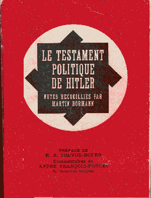 L'autre fatalité, pour moi, c'est d'être au service d'un peuple au passé tragique, aussi instable que le peuple allemand, aussi versatile, et qui passe, selon les circonstances, d'un extrême à l'autre avec une aisance déconcertante. L'idéal dans mon, cas, eût été d'assurer d'abord l'existence du peuple allemand, de former ensuite une jeunesse profondément nationale-socialiste - puis de laisser aux générations futures la tâche de la guerre inévitable, pour peu que la puissance acquise alors par le peuple allemand n'ait pas fait reculer nos adversaires. Ainsi l'Allemagne eût été prête, matériellement et moralement. Elle eût disposé d'une administration, d'une diplomatie et d'une armée formées dès l'enfance selon nos principes. L'uvre que j'ai entreprise pour promouvoir le peuple allemand à la place qui lui est due ne saurait malheureusement être l'uvre d'un seul homme ni d'une seule génération. Je lui ai donné toutefois la notion de sa grandeur et lui ai insufflé le sentiment exaltant de la réunion de tous les Allemands au sein d'un grand Reich indestructible. J'ai semé la bonne semence. J'ai fait comprendre au peuple allemand la signification de la lutte qu'il mène pour son existence.