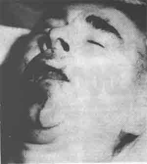 facial bones were smashed with iron bars (including six