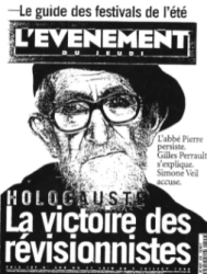 Baynac affirms that the revisionists/deniers have plenty of reason for rejoicing, especially since the Abbé Pierre affair "changed the atmosphere" in their favor. Baynac also notes that among the anti-revisionists, "disarray has given way to consternation," that historian Pierre Vidal-Naquet "is grieved," that the prominent French-Jewish intellectual Bernard-Henri Lévy "is beside himself," that Pierre-André Taguieff "is frightened," and that the front cover of an issue of the French magazine L'Événement du jeudi ("The Thursday Event") proclaimed "The Victory of the Revisionists."