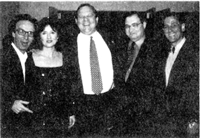 Harvey Weinstein, center, president of Miramax Films, with Abe Foxman, second from right, national director of the Anti-Defamation League, and Howard Berkowitz, far right, ADL national chairman, at a preview screening in New York of the new Italian film "Life is Beautiful." At the far left is Robert Benigni, star, director and co- screenwriter of the Holocaust "comic fable," released by Miramax (a Disney subsidiary), with his wife and co-star, Nieoletta Braschi.