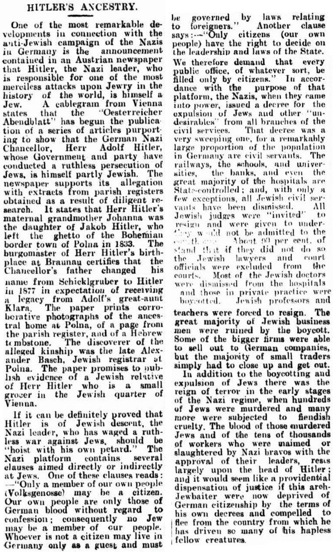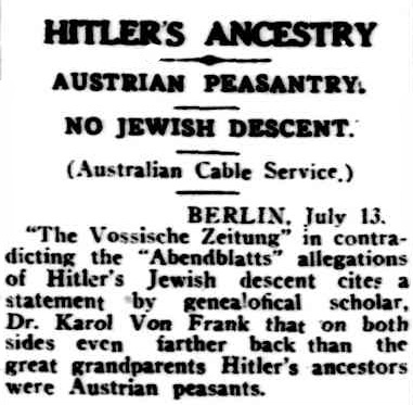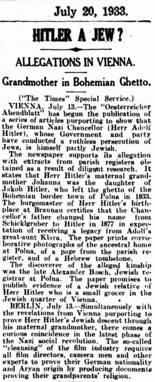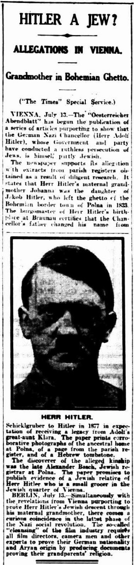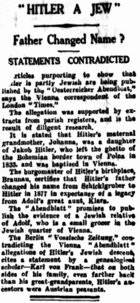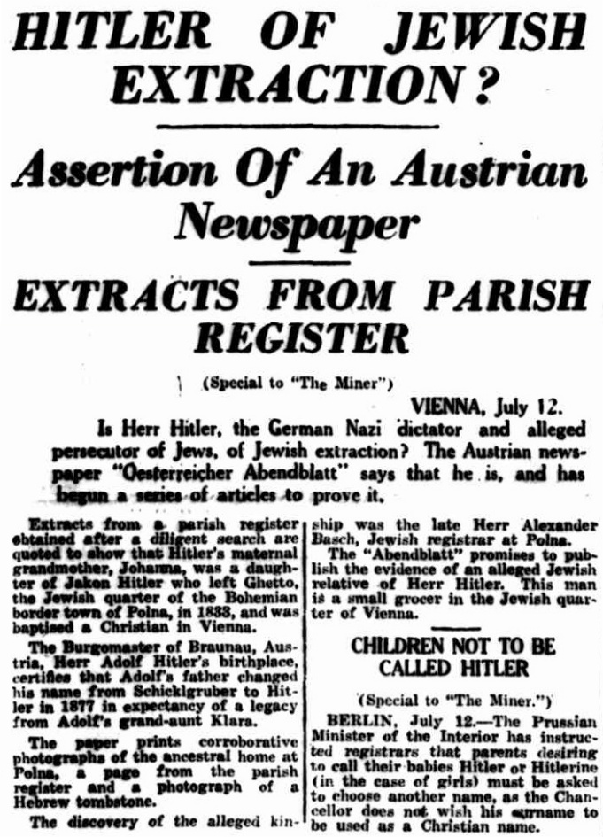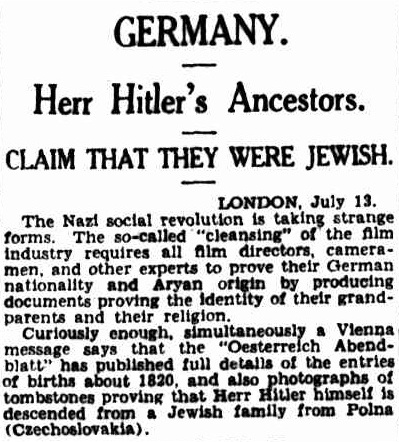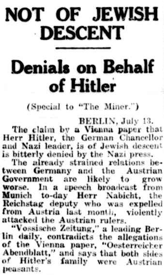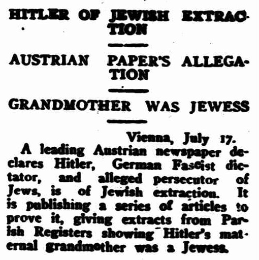 reporting on allegations in Vienna that Hitler was part Jewish