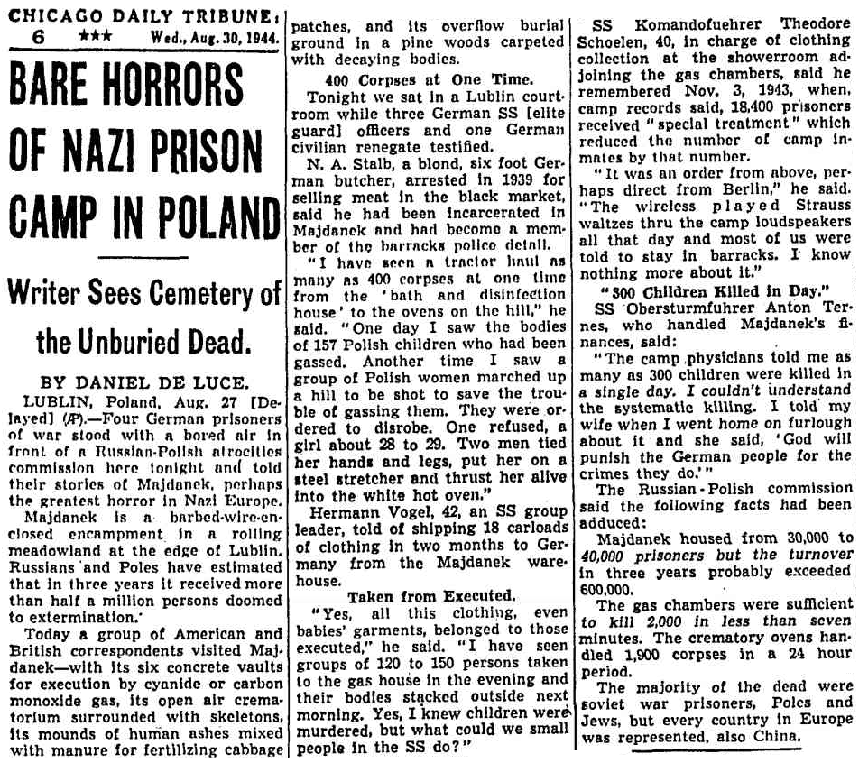 "Dan De Luce, who participated in an August 1944 tour of the remains of Majdanek on behalf of the AP