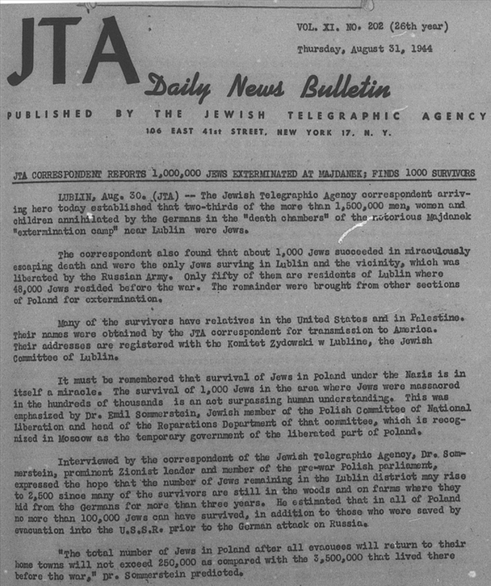 On August 30, 1944, just after the commission had published its report, Sommerstein was interviewed by a journalist from the Jewish Telegraphic Agency who subsequently reported that of the 1,500,000 people the Commission claimed were killed at the camp, 1,000,000 of them were Jewish.