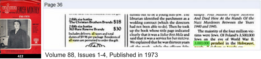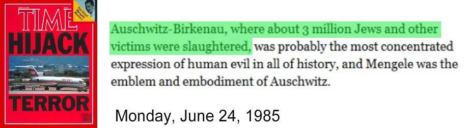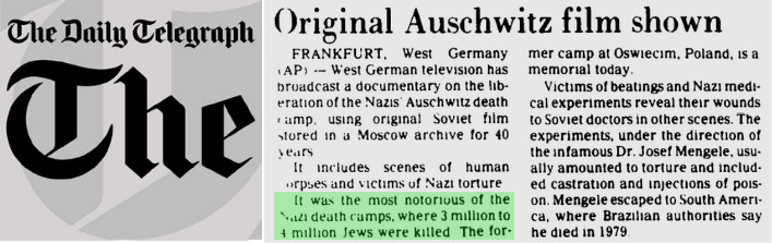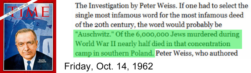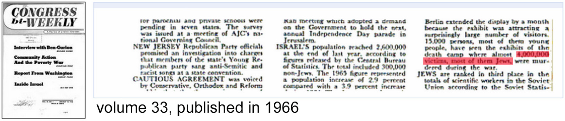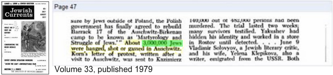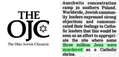 "In Auschwitz three and one-half million Jews were murdered by the Nazis.