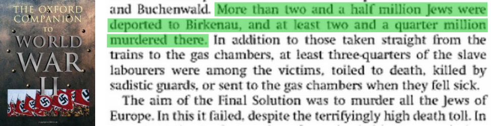 "More than two and a half million Jews were deported to Birkenau,and at least two and a quarter million murdered there."