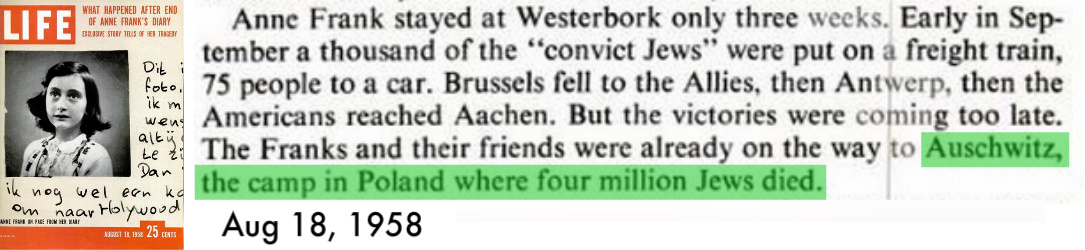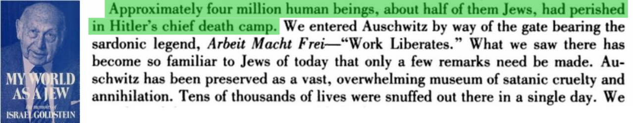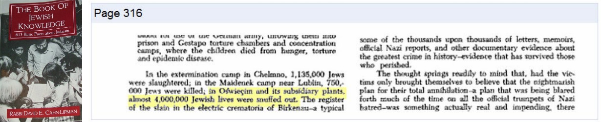 ".. in Oswiecim (Polish name for Auschwitz) and its subsidiary plants,almost 4000000 Jewish lives were snuffed out."
