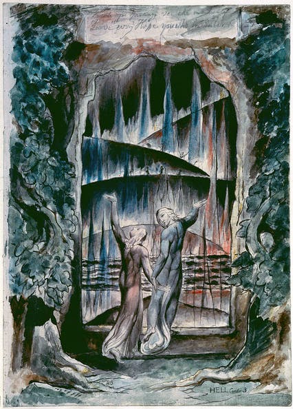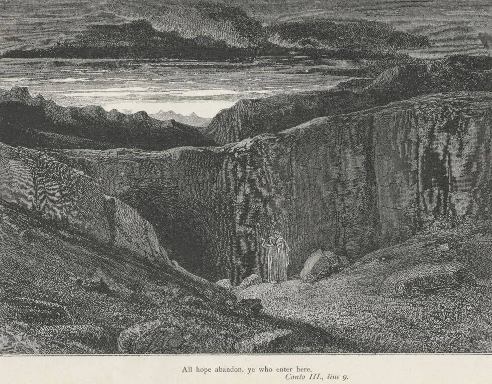 "Ihr, die Eintretenden, legt jede Hoffnung nieder" (Leave any hope, you who enter).