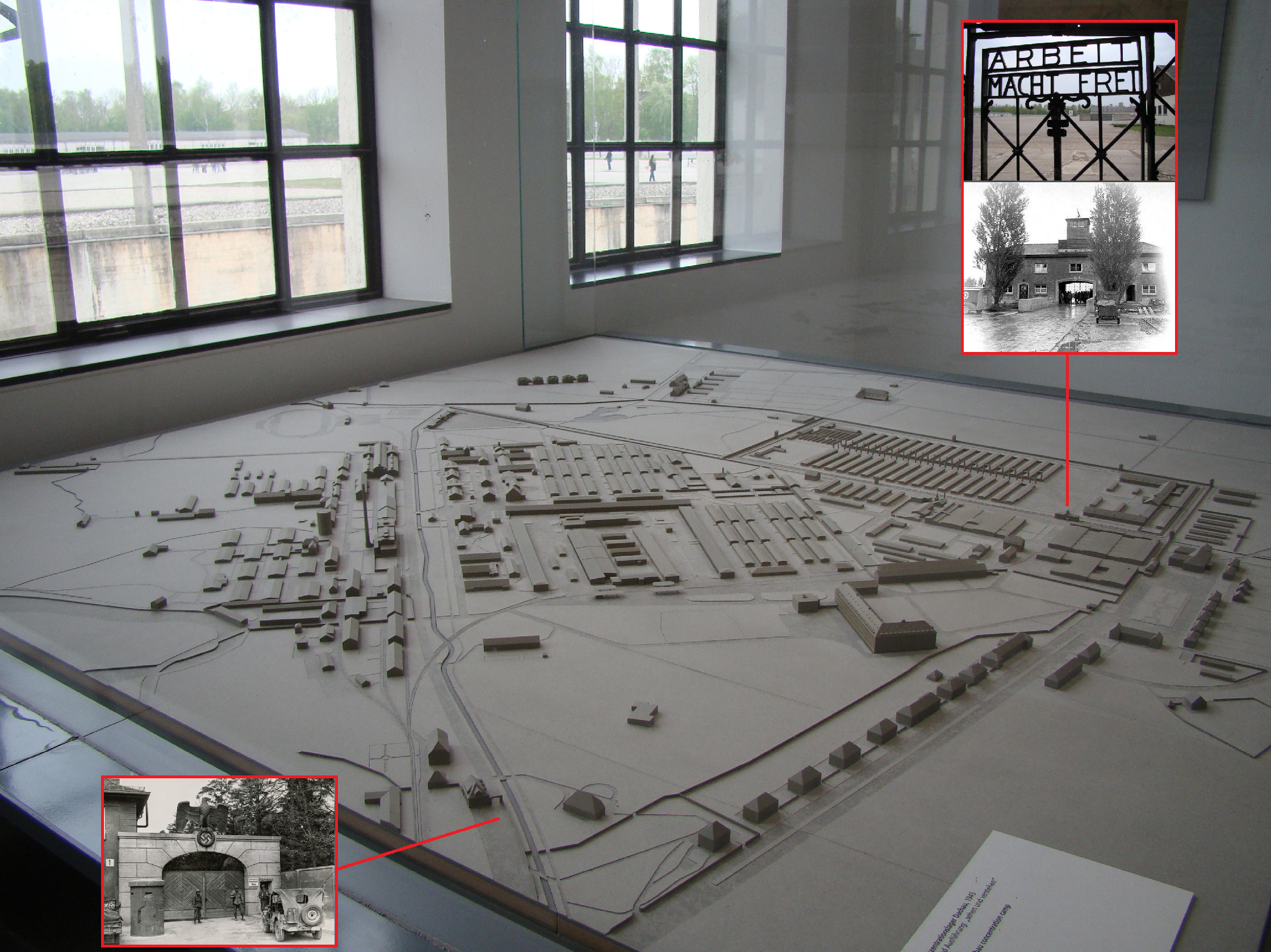 A model of Dachau in the Permanent Exhibition at Dachau memorial (2014) which I annotated with details of the