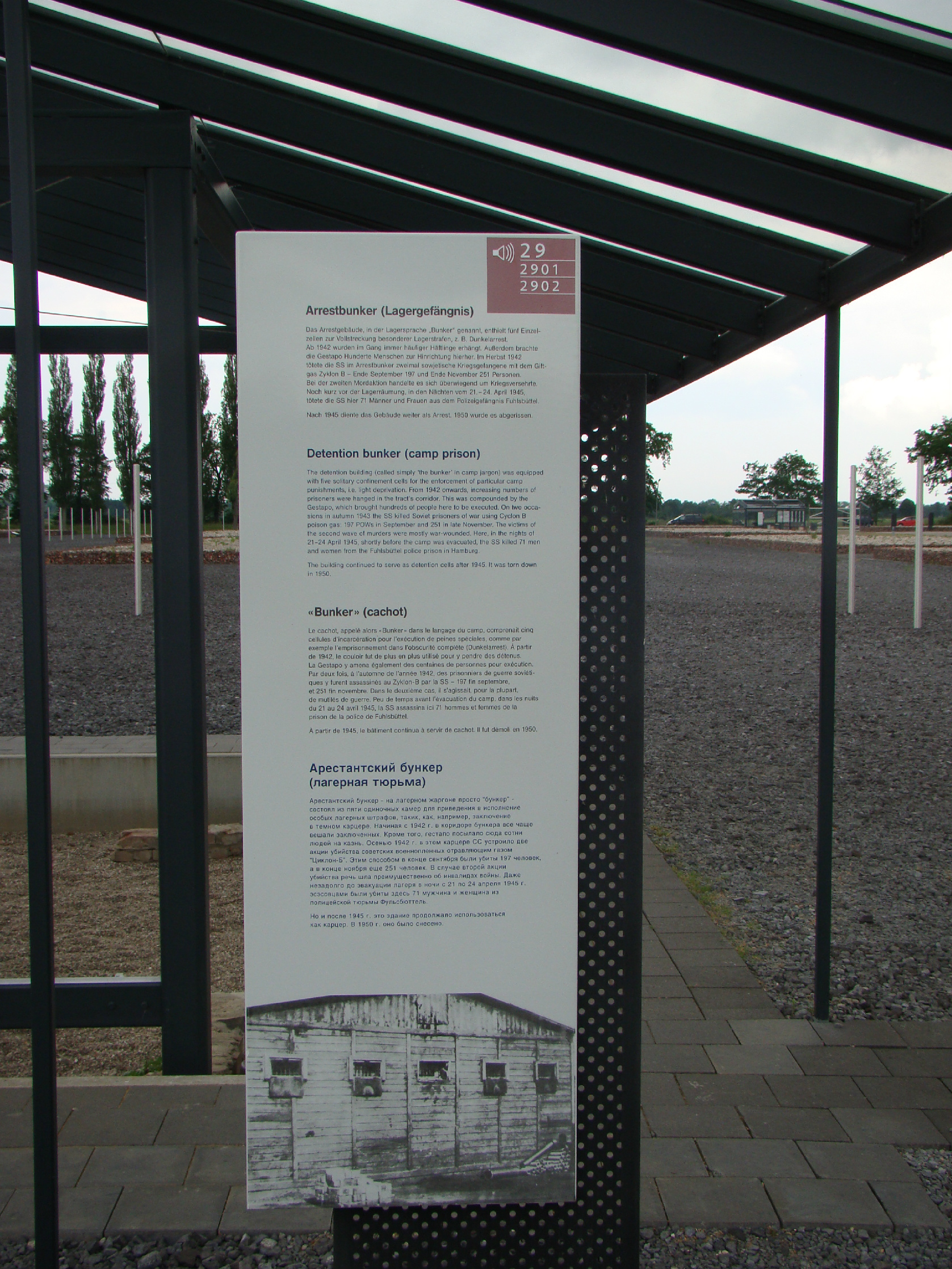 The detention building (called simply 'the bunker' in camp jargon) was equipped with five solitary confinement cells for the enforcement of particular camp punishments, i.e. light deprivation. From 1942 onwards, increasing numbers of prisoners were hanged in the tract's corridor. This was compounded by the Gestapo, which brought hundreds of people here to be executed. On two occasions in autumn 1943 the SS killed Soviet prisoners of war using Cyclon B poison gas: 197 POWs in September and 251 in late November. The victims of the second wave of murders were mostly war-wounded. Here, in the nights of 21-24 April 1945, shortly before the camp was evacuated, the SS killed 71 men and women from the Fuhlsbüttel police prison in Hamburg.