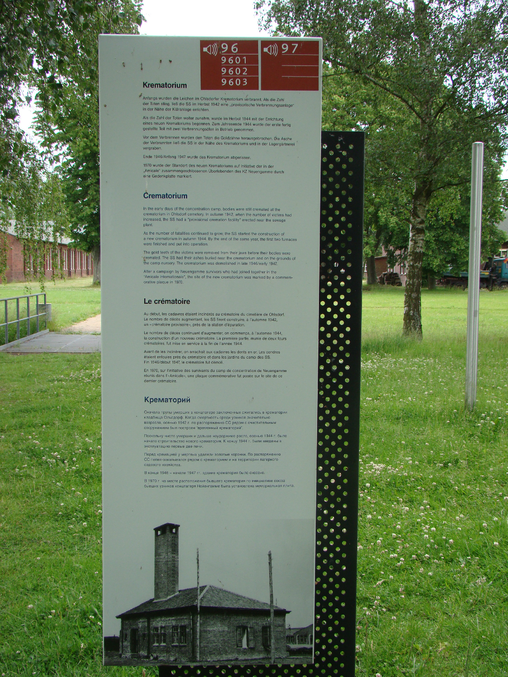 After a campaign by Neuengamme survivors who has joined together in the "Amicale Internationale", the site of the new crematorium was marked by a commemorative plaque in 1970.