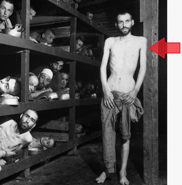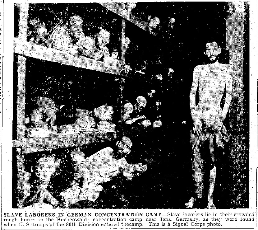 "The famous photo above was taken at the Buchenwald concentration camp, inside Block #56, by Private H. Miller of the Civil Affairs Branch of the U. S. Army Signal Corps on April 16, 1945, five days after the camp was liberated by the Sixth Armored Division of the US Third Army on April 11, 1945. The photo was published by the New York Times on May 6, 1945 with the caption “Crowded Bunks in the Prison Camp at Buchenwald.”"