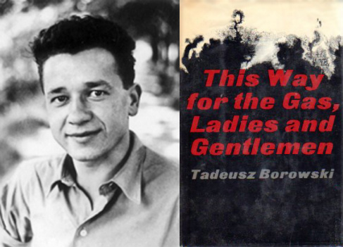 Polish Auschwitz survivor Tadeuz Borowski's 1959 book, which was published in English in 1967 as This Way for the Gas, Ladies and Gentlemen, is described on wikipedia as "a collection of short stories ... inspired by the author's concentration camp experience... The short stories are linked by the themes as well as the presence of the main character Tadek, who serves the role of the narrator as well ..." Borowski's wrote of a soccer match at Auschwitz, and the Nazis gassing people next to the pitch: