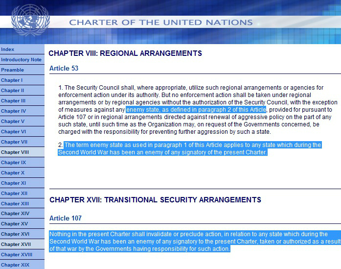 I found out from Germar Rudolf who was recently interviewed by Caroline Yeager (who doesn't like me), that Germany is still listed as an "enemy nation" by the United Nations.