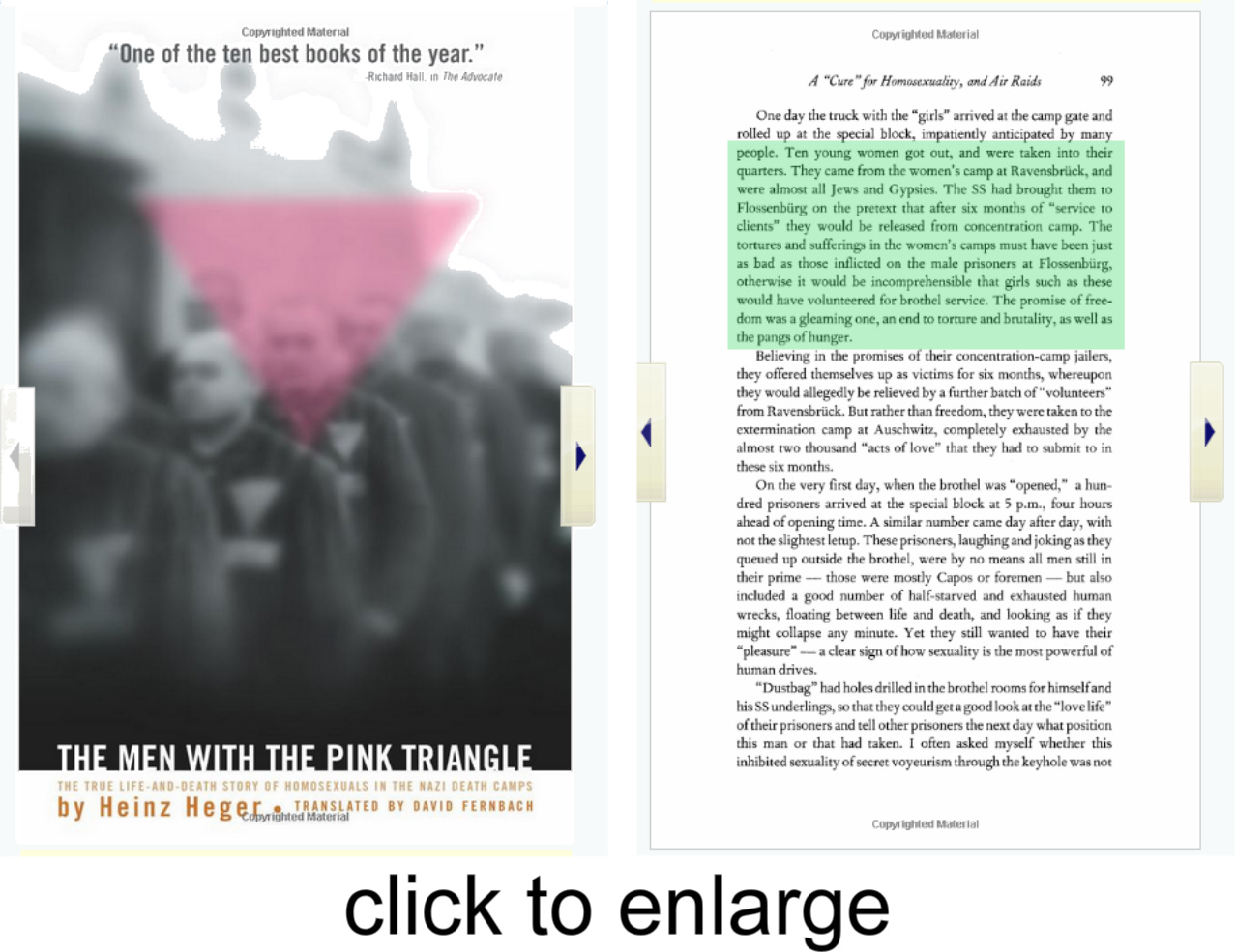 is a book first published in 1980, it's based on the memories of an unnamed homosexual Austrian man who survived the holocaust, apart from claiming more than 4,000,000 people were killed at Auschwitz, it's also states of Jewish women used as prostitutes at Flossenbürg concentration camp:
