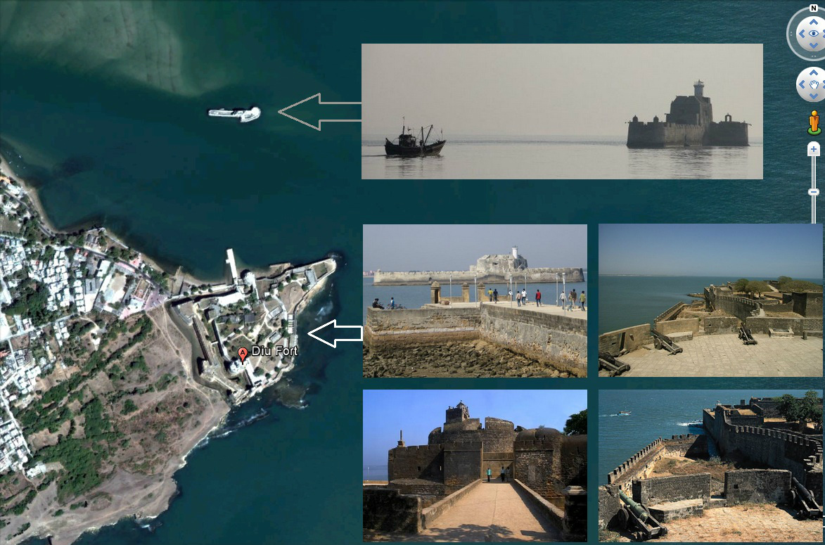 The Portuguese fort which still stands on the island of Diu is now almost 400 years old and is one of India's popular tourist attractions. Diu had been a vital port city where all ships entering and leaving the Gulf of Khambhat—a very important commercial and pilgrim route between India and the Middle East—were required to call at, and pay the Portuguese rulers a duty, perhaps what the structure built out at sea was for.