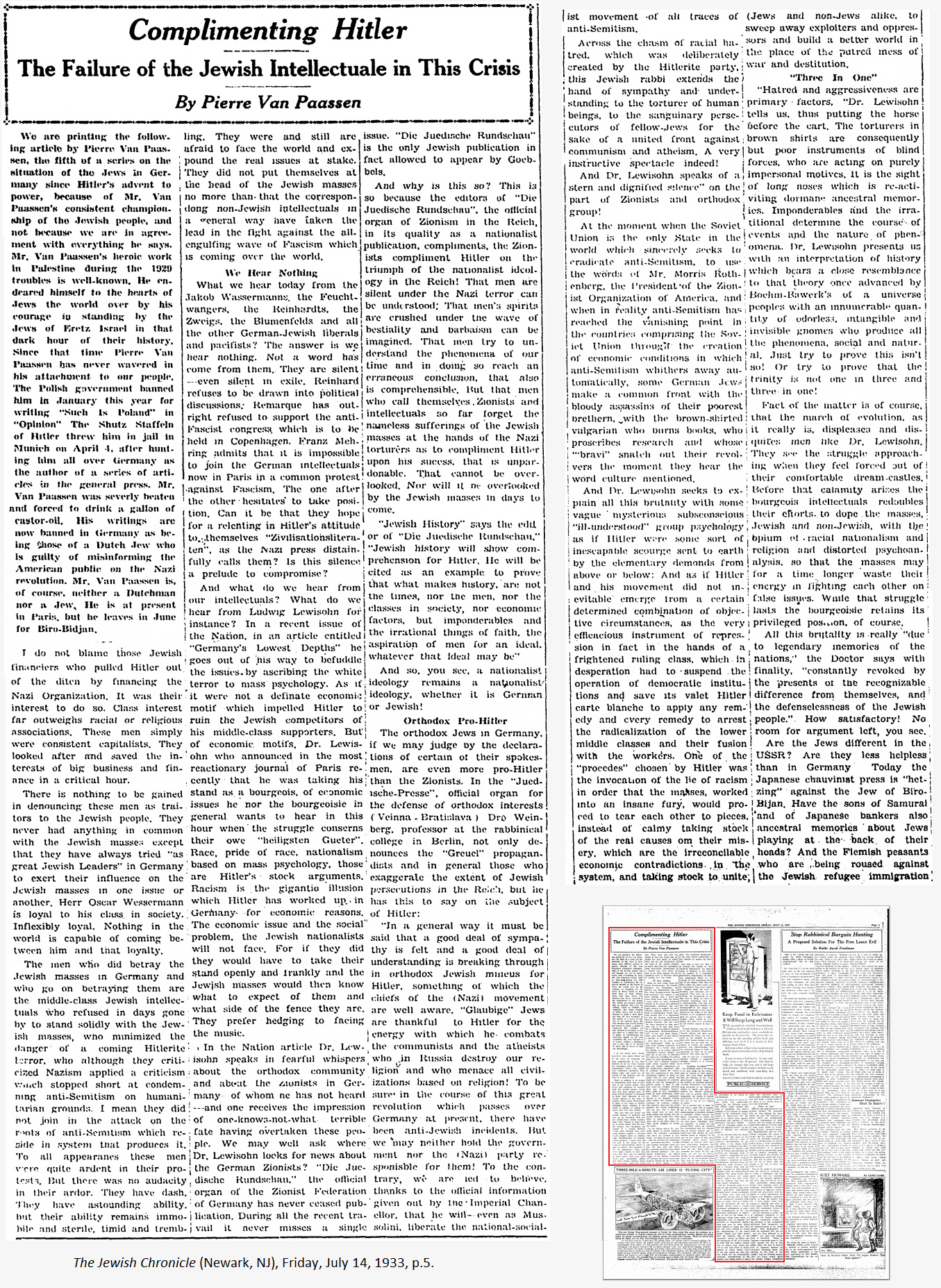 I've recently discovered another article from 1933 by Van Paassen in which he repeats and expands on his Jewish bankers were financing Hitler and the NSDAP claims: