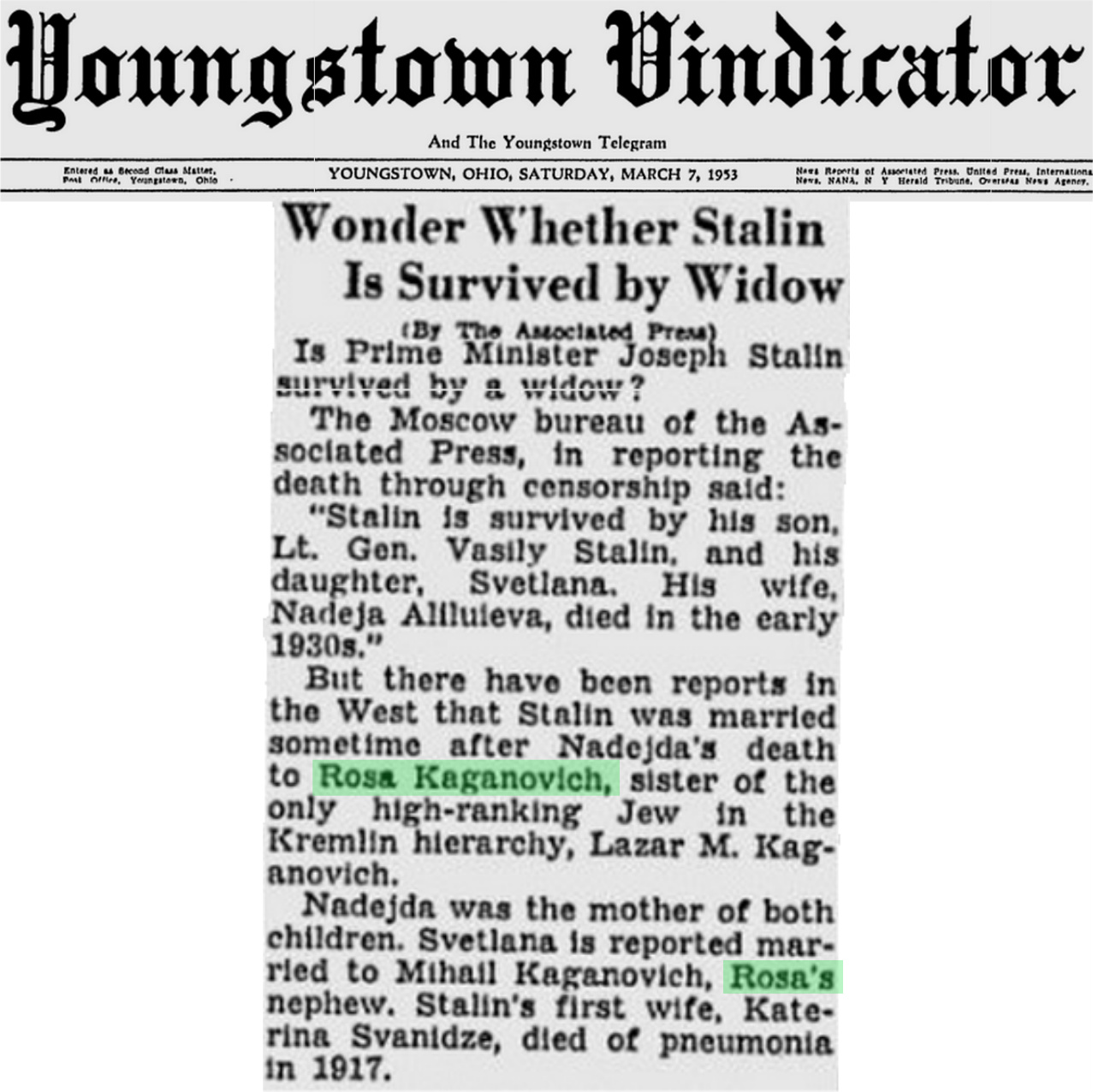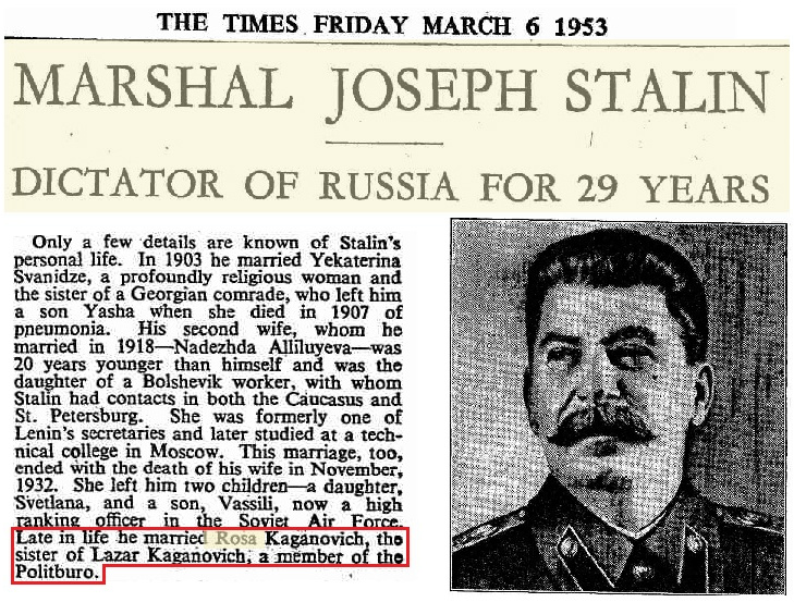 Was Stalin's third wife Rosa, the Jew Lazar Kaganovich's sister?
