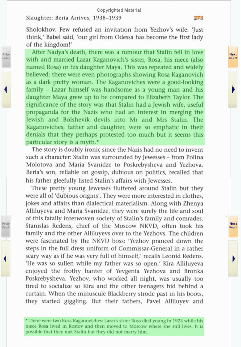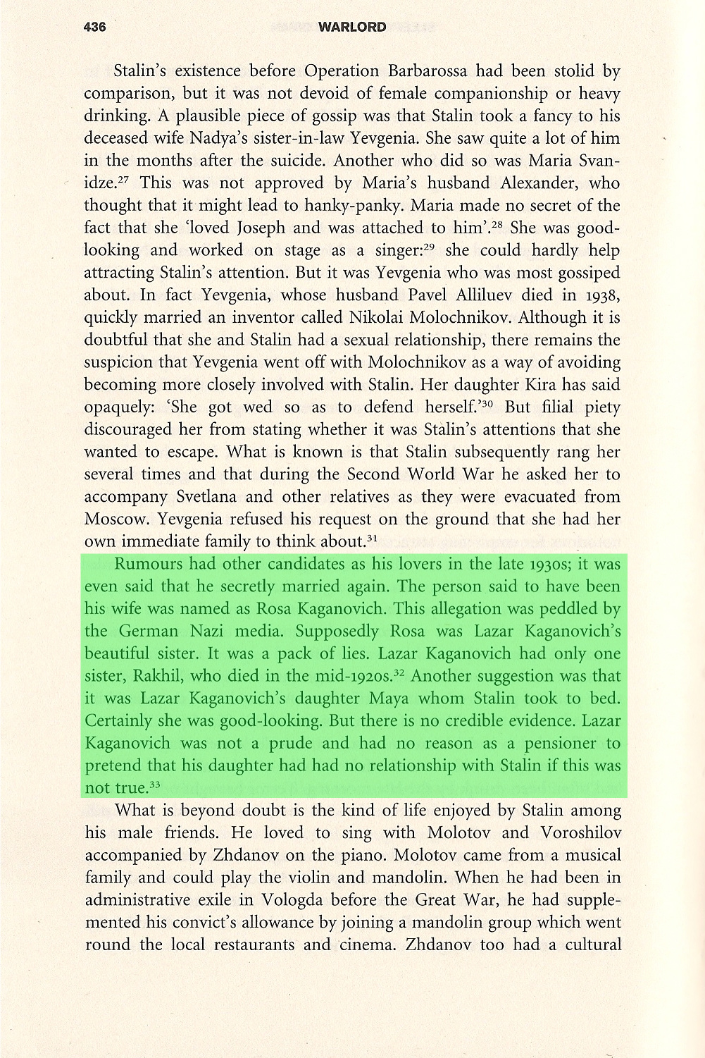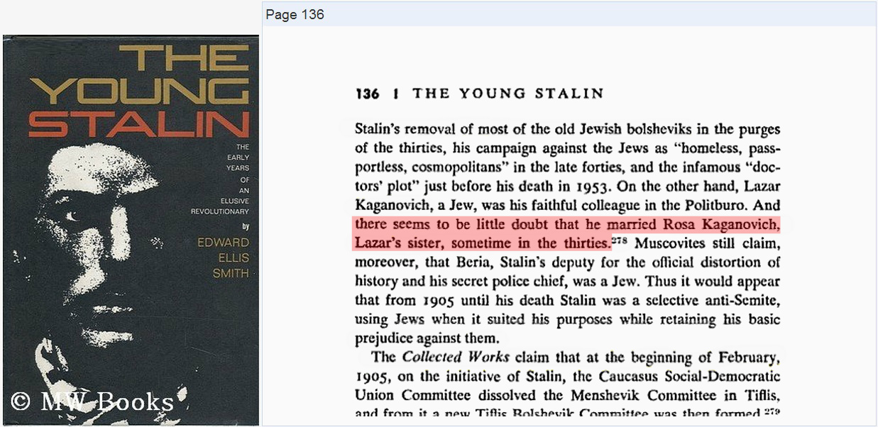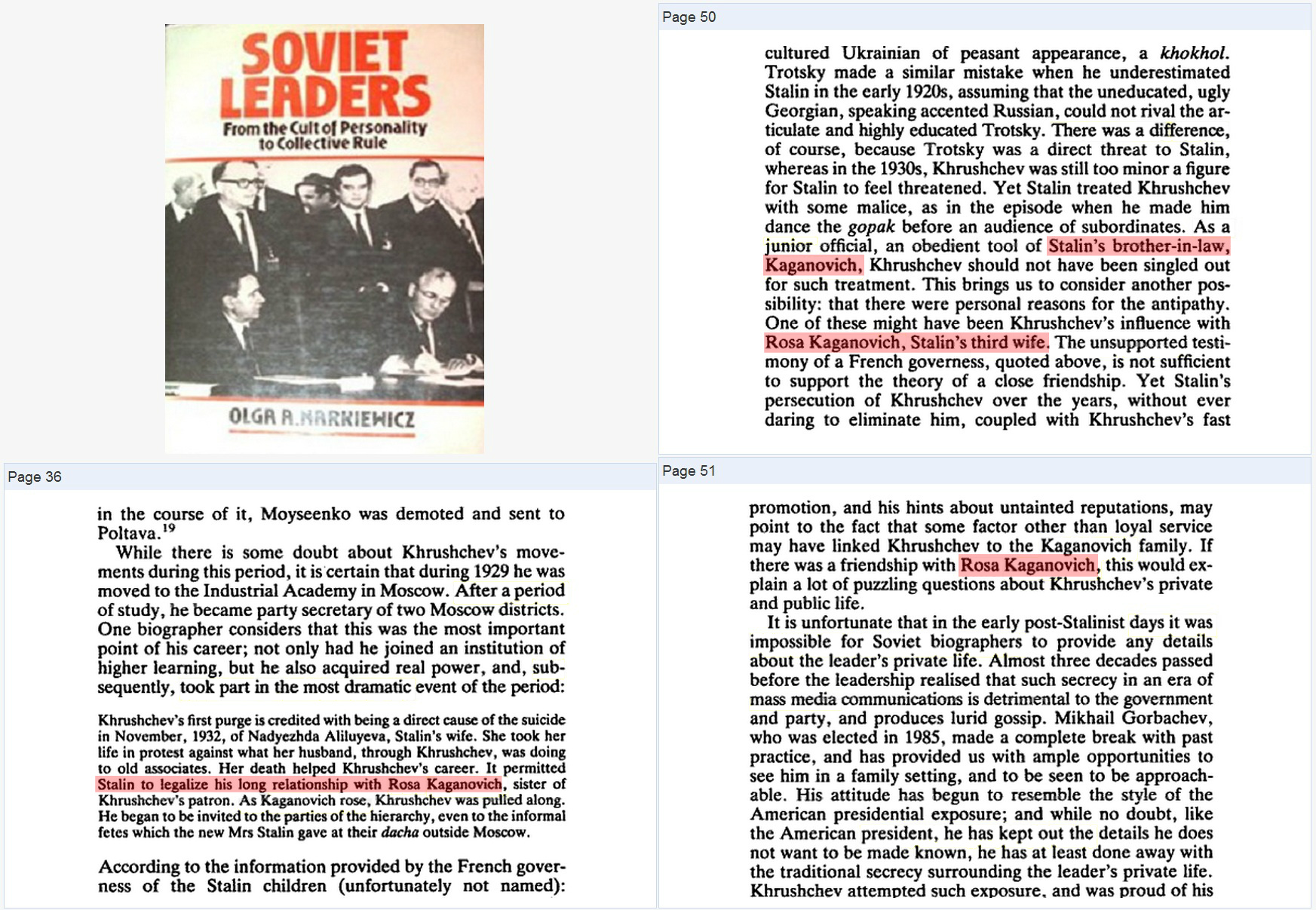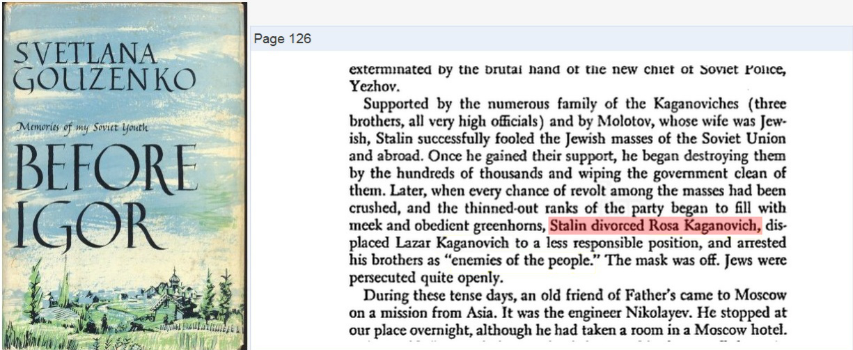 book entitled Only One Year in which she denied Stalin married a Rosa Kaganovich,
