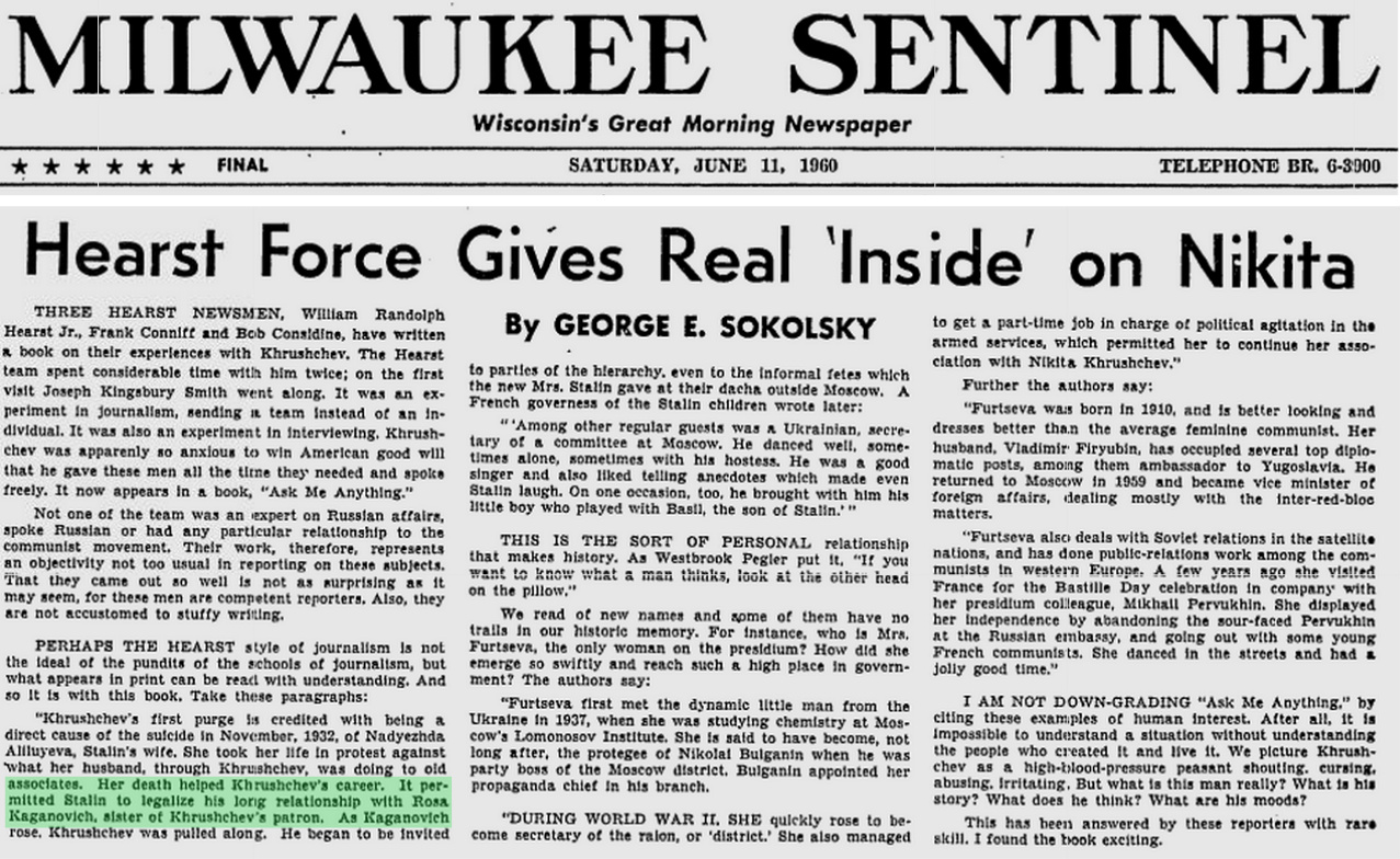 his 1973 book The Death of Stalin; that Rosa Kaganovich was invented, but, not by