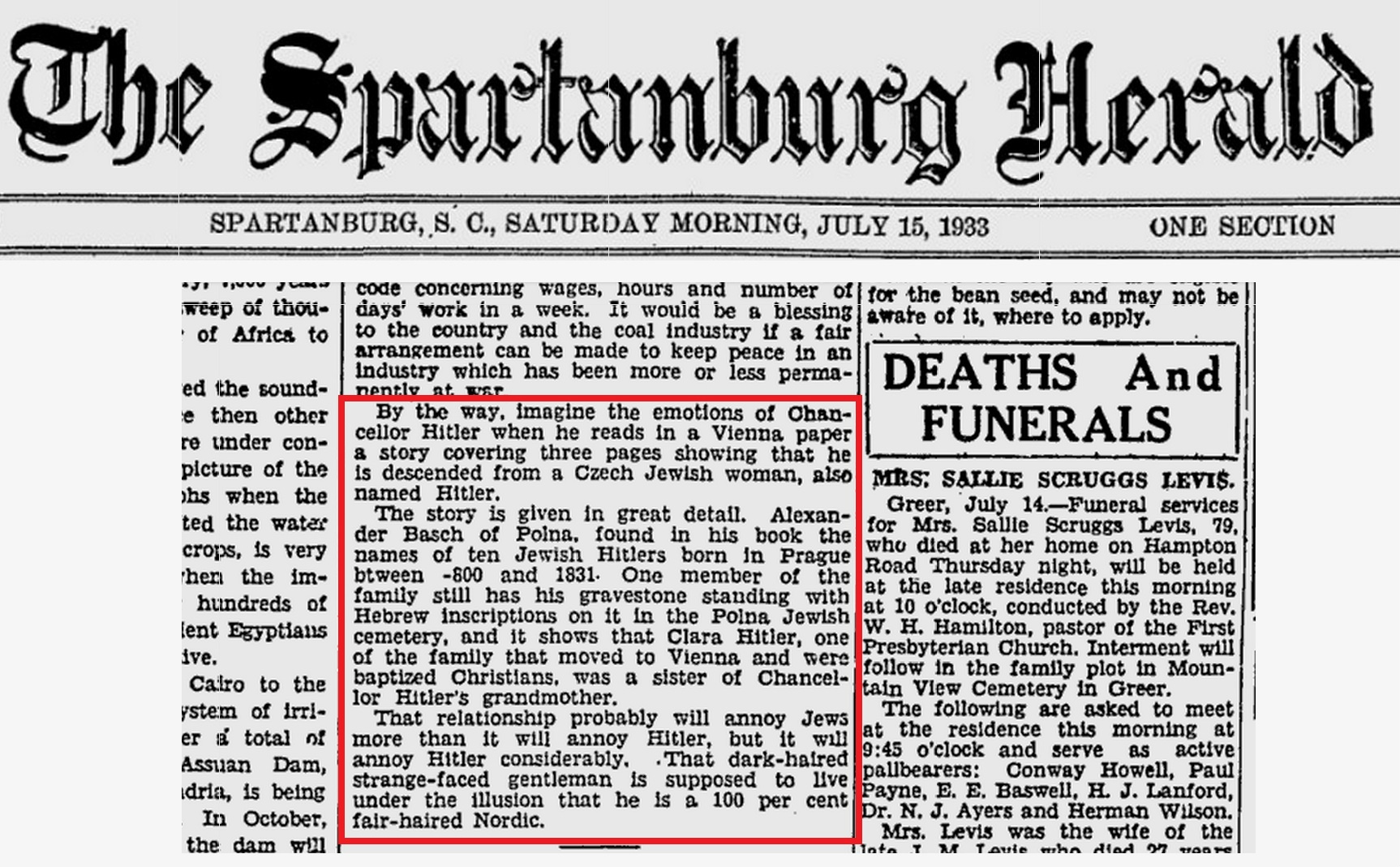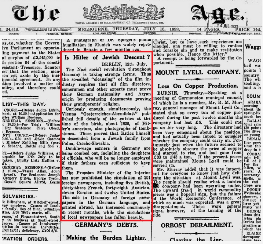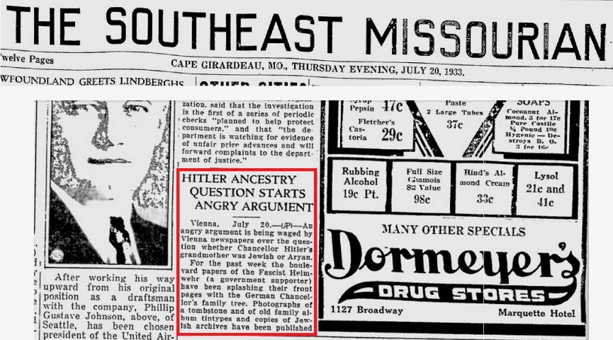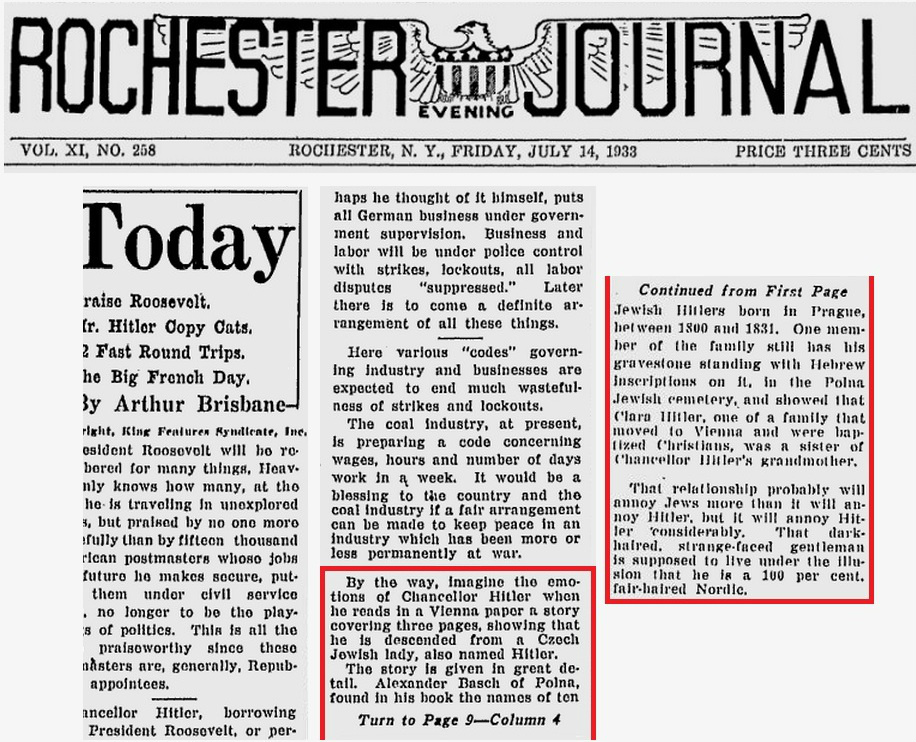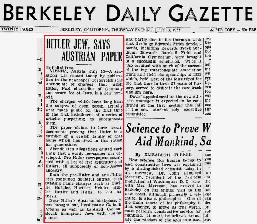 More 1933 press clippings on "Hitler the Jew" story