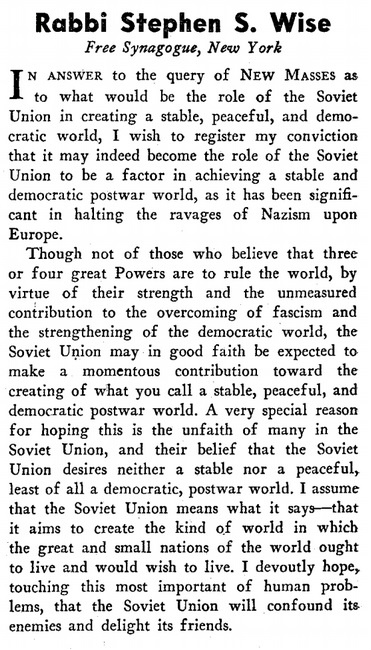 More pro-Sovietism from the "anti-communist" Rabbi SS Wise