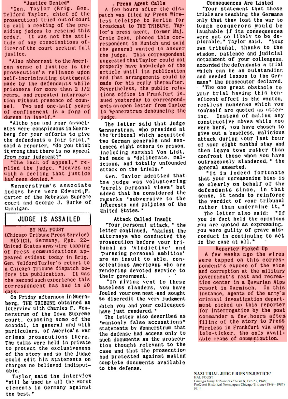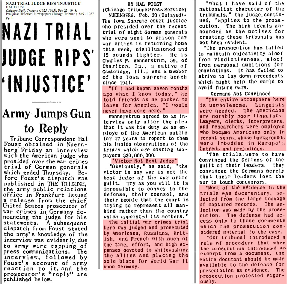 journalist for the Chicago Daily Tribune, who was in Nuremberg covering the trials.