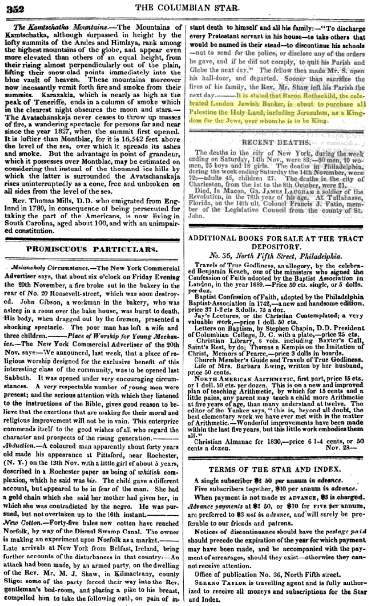 — The Columbian Star (Philadelphia), Saturday, November 28, 1829