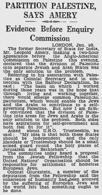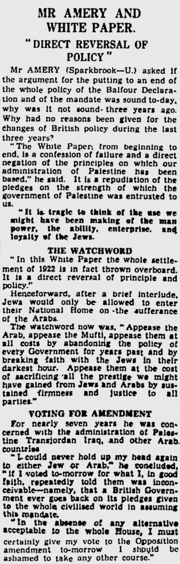 Secret-Jew Amery's contributions to the establishment of the Jewish State didn't end with penning the Balfour Declaration to Lord Rothschild, who was Karl Marx's 3rd cousin, once removed. In 1939, he spoke and voted against the White Paper on Palestine (which abandoned the proposal of partitioning Palestine into separate states) and then in 1946 he appeared before the Palestine Commission appealing for the partitioning of Palestine, and the creation of a Jewish State.