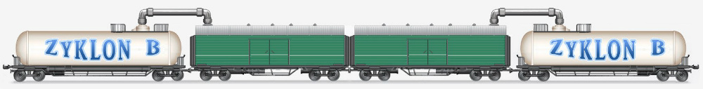 The existence of the second gas chamber was widely believed, but no one had ever seen it. It was said to have been brought to have been brought to Ravensbruck at the end of 1944 by S.S. Obsersturm [sic] führer Brauning from Auschwitz where he had been in charge of gassing methods. It consisted of what appeared to be two covered railway waggons attached together and connected with two railway tankers containing the gas. The women put into the trucks were unaware of the fate in store for them and were generally under the impression that they were to be removed to another camp. The doors of the waggons were shut and the gas pumped in at either end from the tankers. Death was stated to have taken two hours."